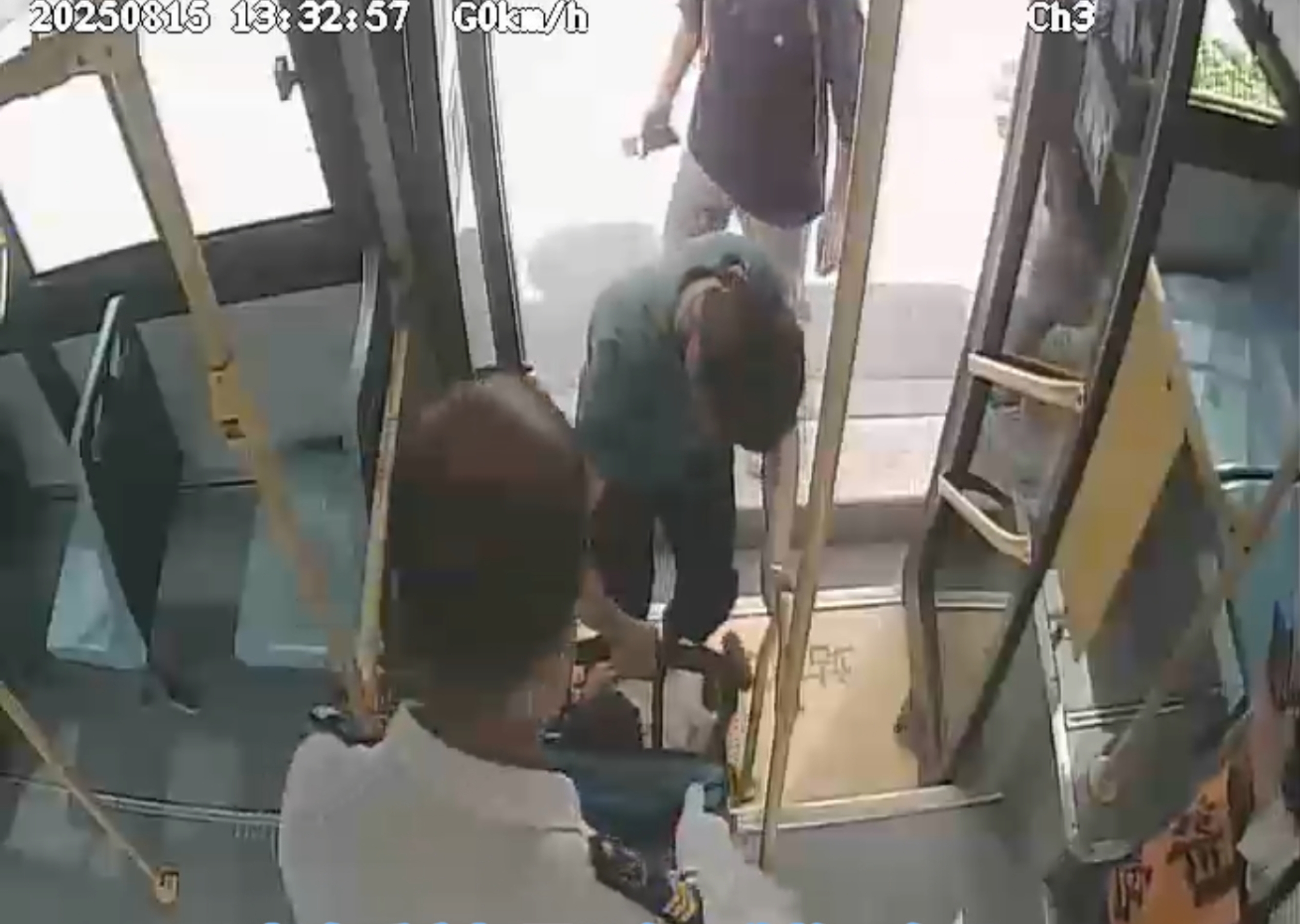 跪地3分钟守护晕倒乘客,909路公交寻找爱心女士
